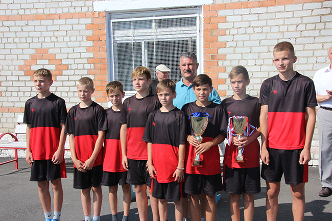 Также специалист отдела культуры, молодежной политики и спорта Леонид Картавенко вручил Кубки и медали детской команде по футболу из села Витовка Почепского района, занявшую 1 место в турнире по мини-футболу «Золотой медведь» и 2 место по турниру памяти Данилевича. Также наш игрок – юный футболист Артем Пахомов стал лучшим бомбардиром команды в турнире по мини-футболу «Золотой медведь».
